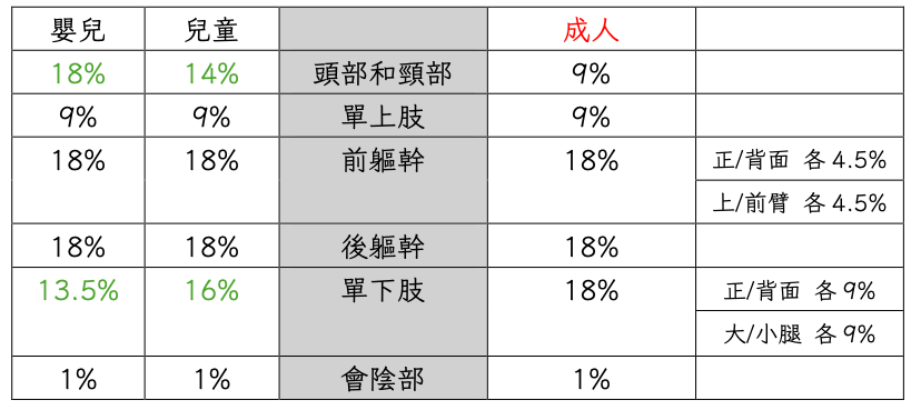 估算燒傷總體表面積(Total Body Surface Area, TBSA)受損範圍