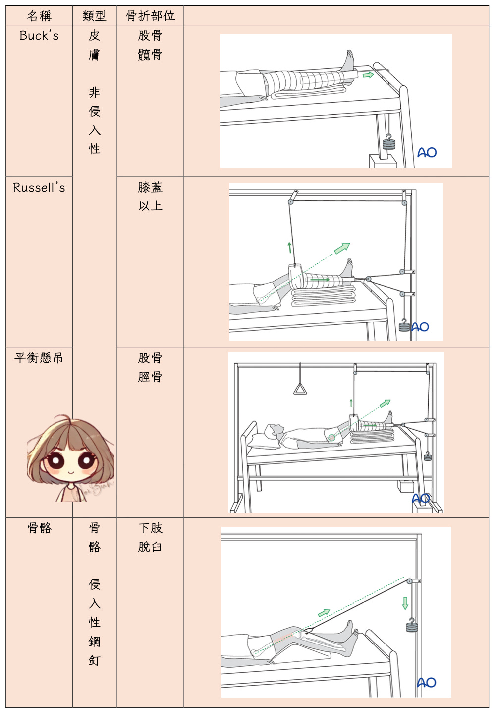 目的:減輕肌肉痙攣、術前穩定骨折部位、維持對位