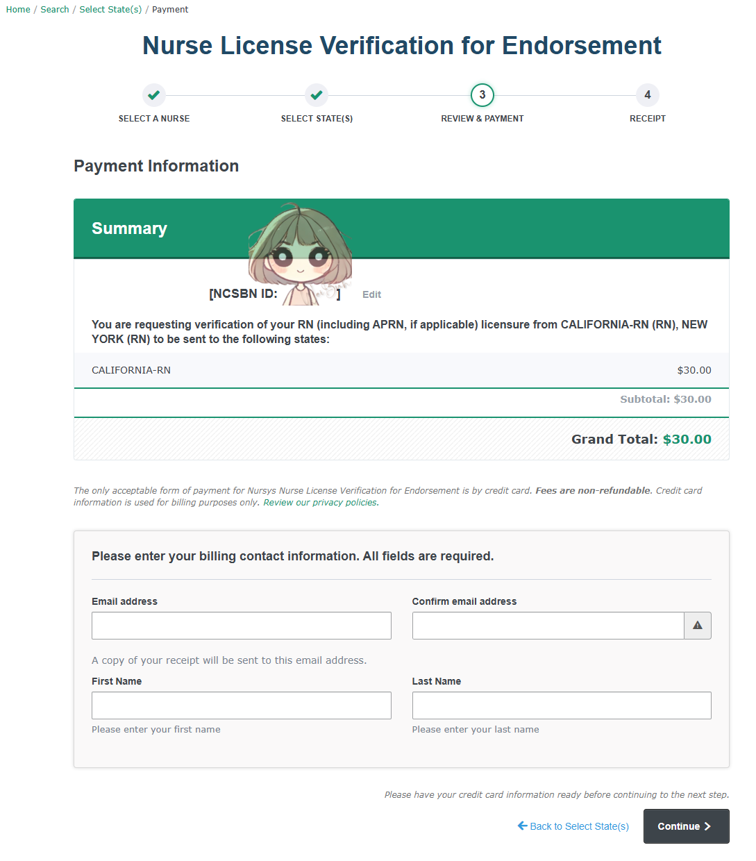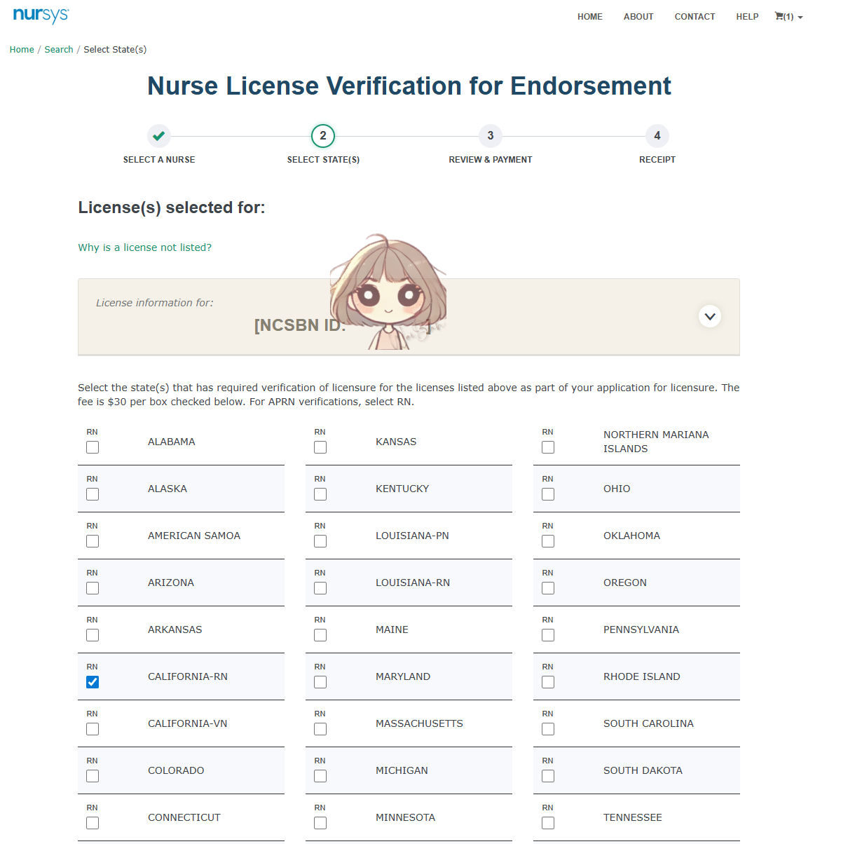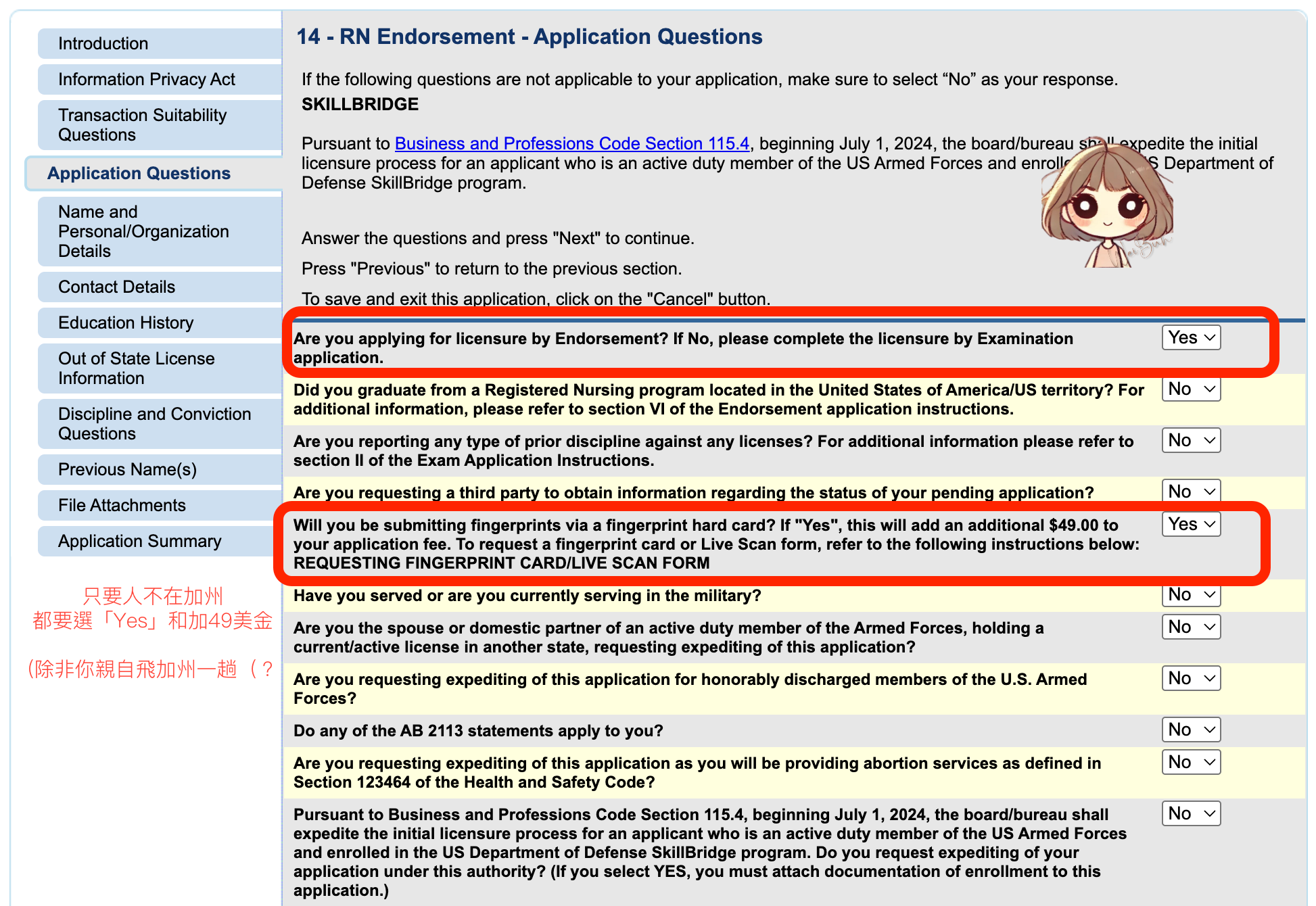 美國境外護理學校畢業 750美金不在加州者,需要另外有實體指紋卡49美金的認證費