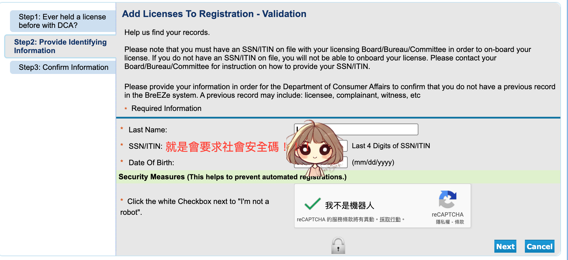 不要再問了~你沒有社會安全碼,就是不能辦!系統也不給你按 Next