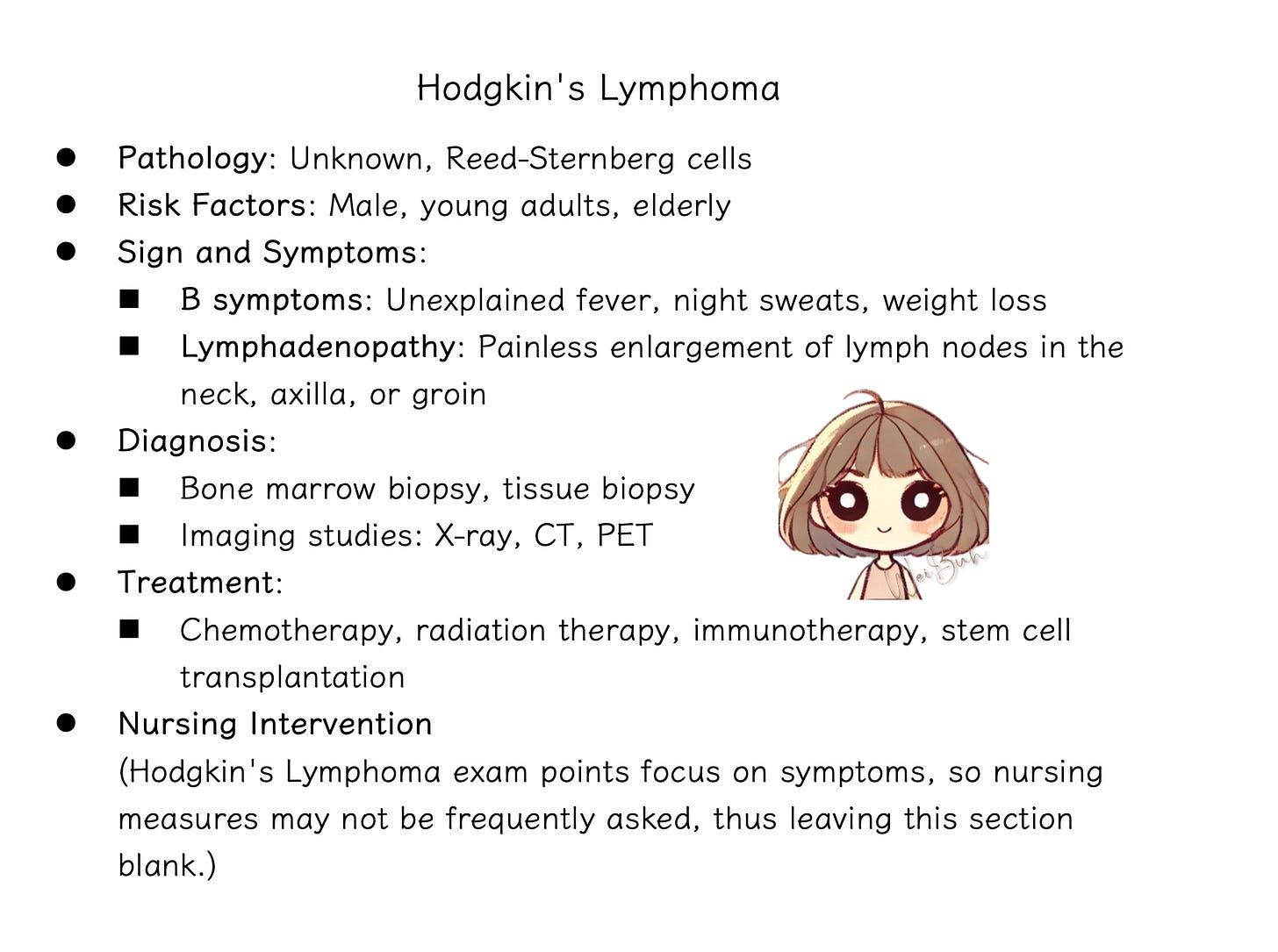 These are classic "B symptoms" of Hodgkin's lymphoma.❌ (d) Commonly involves bone marrow
